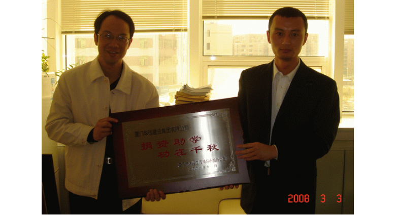 黃鶴麟副書(shū)記代表希望工程領(lǐng)導(dǎo)小組辦公室向我司頒發(fā)紀(jì)念牌匾,并向嚴(yán)總贈(zèng)送誠(chéng)信鼎。