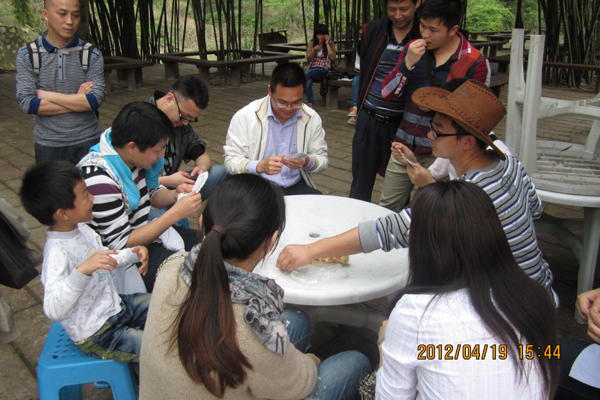 經(jīng)過愉快的車程,快到目的地時,大家已經(jīng)迫不及待的想要下車,呼吸大自然的新鮮空氣。這里到處都是綠色的:山上、小草、亭子,就連小溪的水好像也是綠色的!大家都沉浸在這秀麗景色中,有說有笑、盡情游玩,有的玩撲克,有的吃東西,有的攝影,其樂融融,營造了一個和諧團隊氛圍。