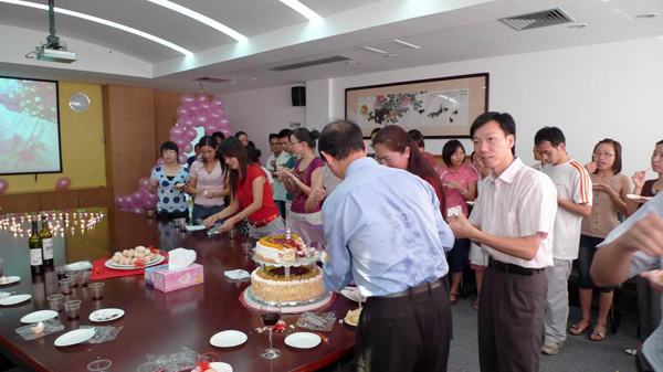 在溫情的八月迎來了華遠(yuǎn)集團(tuán)創(chuàng)始人嚴(yán)文亮先生的生日,華遠(yuǎn)集團(tuán)員工自發(fā)為嚴(yán)總舉辦了一個(gè)神秘而又驚喜的生日Party。粉色的氣球、雙心相交的生日蠟燭、醇香的美酒、誘人的蛋糕,點(diǎn)燃了現(xiàn)場的氣氛也傳遞出了參與者的喜悅。在舉杯共慶之時(shí)大家道出了自己內(nèi)心最真誠的祝福。8月份過生日的員工,幸運(yùn)地同嚴(yán)總共同分享這份溫馨與快樂,并合影留念。
