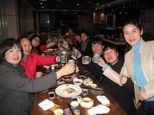 在蒙蒙春雨中,我們迎來(lái)了一年一度的“三八婦女節(jié)”。這場(chǎng)春雨雖然破壞了廣大女同胞們戶外肆意狂歡的計(jì)劃,但絲毫不影響大家慶祝節(jié)日的愉快心情。集團(tuán)公司的女同胞們,一早就紛紛收到帥哥領(lǐng)導(dǎo)們?yōu)樗齻儷I(xiàn)上的節(jié)日鮮花。中午大家又齊聚一堂,共同品味精致的料理,俗語(yǔ)有云:“三個(gè)女人一臺(tái)戲”,今天可是N多個(gè)女人同在一張桌子上用餐,那份壯觀與熱鬧可想而知。熱鬧的午餐之后,大家直奔商業(yè)中心開(kāi)心地Shopping,真是盡顯女人本色。